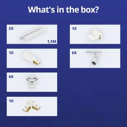 Komplettset 1-Phasen Rail L 1,5 x 1,5 Meter Weiß | incl. 6x Spot + GU10 2700K 3W Dimmbar + Abschlusskappe, Stromanschluss und L -Verbinder