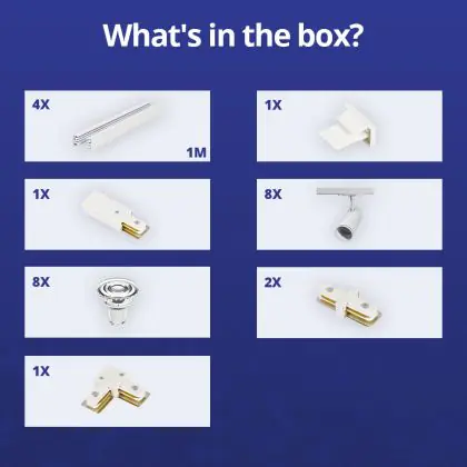Komplettset 1-Phasen Rail L 2 x 2 Meter Weiß | incl. 8x Spot + GU10 2700K 3W Dimmbar + Abschlusskappe, Stromanschluss und L -Verbinder