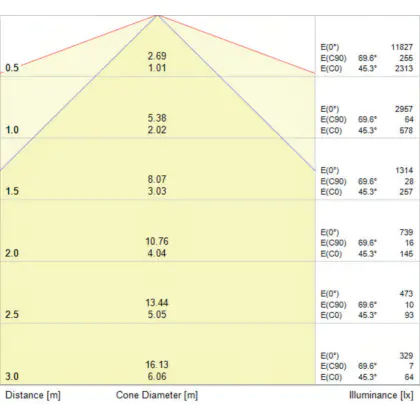 Der Abstrahlwinkel bezeichnet den Winkel, in dem das Licht aus der Lichtquelle ausgestrahlt wird. Er wird in Grad (D) angegeben. Je geringer die Gradzahl des Abstrahlwinkels ist, desto kleiner ist auch der Durchmesser des Lichtkegels, den die Lichtquelle produziert.