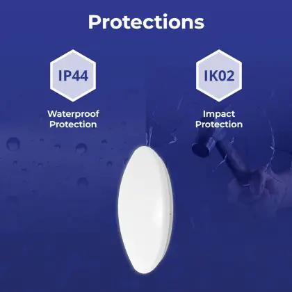 Der IP-Wert zeigt an, wie gut das Leuchtmittel gegen das Eindringen von Feuchtigkeit und Staub geschützt ist. Die erste Ziffer gibt den Schutz gegen Staub an: von 0 = „gar keinen Schutz“ bis 6 = „komplett staubdicht“. Die zweite Ziffer zeigt den Schutz gegen Feuchtigkeit an: von 0 = „gar keinen Schutz“ bis 8 = „geschützt gegen Untertauchen“. Daraus resultiert: Produkte mit einer IP44-Schutzklasse sind vor Spritzwasser geschützt, Produkte mit IP65 oder höher sind (komplett) staub- und wasserdicht.