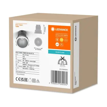 Ledvance Led-Spot Twist Pro Aluminium Silber Reflektor 5W 400lm 30D - 830 | 70mm - Ausschnitt 65mm - IP20