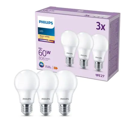 | Herstellername | Box 3 stuks - Philips LED Lamp Mat - 60 W - E27 - Warmwit licht | |