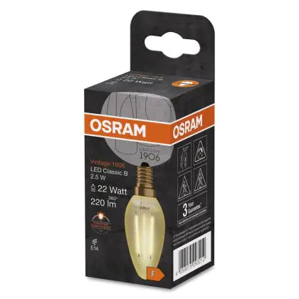 Osram Vintage 1906 LED E14 Gedreht Kerze Fadenlampe Gold 2.5W 220lm - 824 | Ersatz für 25W