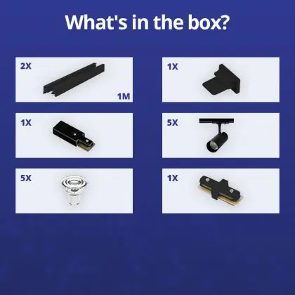 | Nom du fabricant | Complete Straight 2-meter 1-Phase Track Set Black incl. 5x Spot fixture + GU10 2700K 3W Dim – 2x 1 M | |