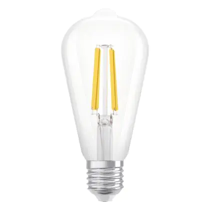 Cette ampoule Ledvance Filament LED E27 Poire Claire 3.8W 806lm - 830- | Remplacement 60W avec son efficacité lumineuse de lumen par watt vous permettra de profiter d’un éclairage de qualité. Avec sa durée de vie de 50000 heures, vous n’aurez pas à vous soucier de son remplacement avant quelques années.
