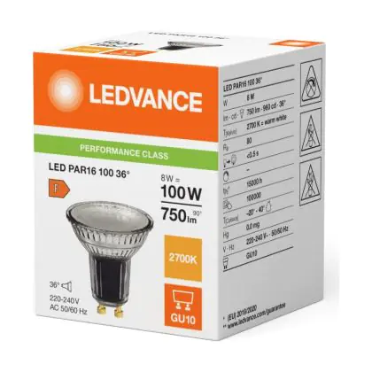 Description Ledvance LED PAR16 GU10 Réflecteur 8W 750lm 36D - 827 | Remplacement 80W