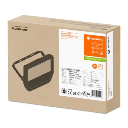 Description Ledvance Projecteur LED GEN 3 Blanc 50W 6000lm 100D - 840 | IP65 - Symétrique - Remplacement 100W