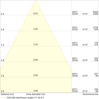 • Angle de diffusion: 55 °