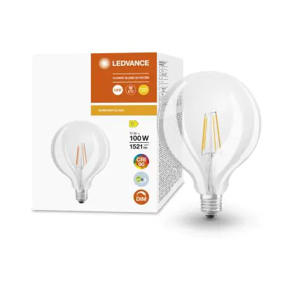Description Ledvance Superior Classic LED E27 Globe Filament Claire 11W 1521lm - 927 | Meilleur rendu de couleur