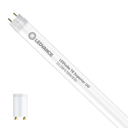 Ce tube LED Ledvance tube LED 150cm | 3000K 22.2W - Superior UO est l’un des produits les plus éconergétiques en remplacement des tubes T8 classiques. Avec ce tube LED vous êtes donc assuré de sa qualité. Avec une puissance de seulement 22.2 W, ce tube LED a la même intensité lumineuse qu’un tube classique qui consomme 58 W. P>