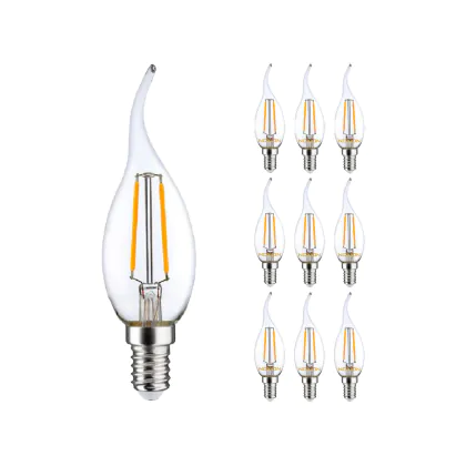 Lot 10x LED E14 Bent-tip Bougie Filament Claire 2.5W 250lm - 827 | Remplacement 25W