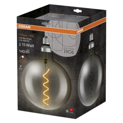 Cette ampoule Osram Vintage 1906 LED E27 Globe Filament Smoke 200mm 5W 110lm - 818 | Remplacement 25W avec son efficacité lumineuse de lumen par watt vous permettra de profiter d’un éclairage de qualité. Avec sa durée de vie de 15000 heures, vous n’aurez pas à vous soucier de son remplacement avant quelques années.