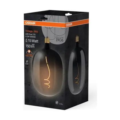 Cette ampoule Osram Vintage 1906 LED E27 Special Filament Smoke 4.5W 150lm - 818 | Remplacement 15W avec son efficacité lumineuse de lumen par watt vous permettra de profiter d’un éclairage de qualité. Avec sa durée de vie de 15000 heures, vous n’aurez pas à vous soucier de son remplacement avant quelques années.