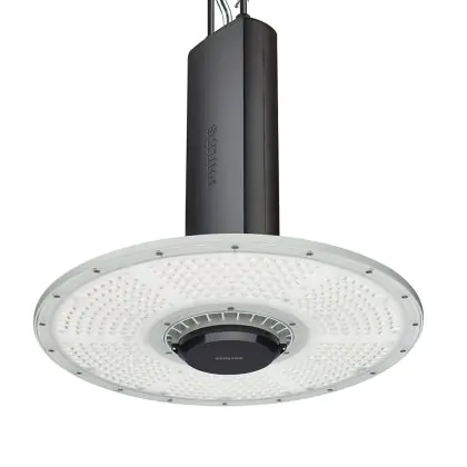 Le Philips Highbay LED Coreline BY122P G4 172W 25000lm 55D - 865 | IP65 est un puissant luminaire qui est très souvent utilisé pour l’éclairage industriel. Ce luminaire suspendu propage un puissant flux lumineux de 25000 Lm et offrant un excellent rendu de couleurs par rapport aux luminaires traditionnels. Cet high-bay LED est capable de résister aux différentes températures extrêmes que l’on peut retrouver dans les hangars, entrepôts ou autres halls industriels. La technologie LED Intégré sur ce luminaire permet de faire d’importantes économies d’énergie. En effet, l’high-bay propose une puissance de 172W pour un équivalent de 400W pour les appareils classiques et dispose d’une durée de vie pouvant aller jusqu’à 50000 heures.