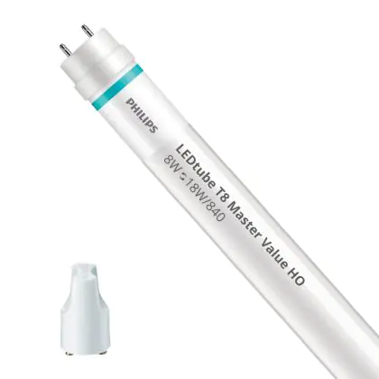 Ce tube LED Philips tube LED 60cm | 4000K 8W - Master Value HO est l’un des produits les plus éconergétiques en remplacement des tubes T8 classiques. Avec ce tube LED vous êtes donc assuré de sa qualité. Avec une puissance de seulement 8 W, ce tube LED a la même intensité lumineuse qu’un tube classique qui consomme 18 W.