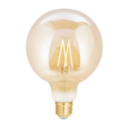 Cette ampoule WiZ Smart LED E27 Globe Filament Ambre 125mm 6.5W 720lm - 820-845 Accordable Blanc | Dimmable - Remplacement 50W avec son efficacité lumineuse de lumen par watt vous permettra de profiter d’un éclairage de qualité. Avec sa durée de vie de 15000 heures, vous n’aurez pas à vous soucier de son remplacement avant quelques années.